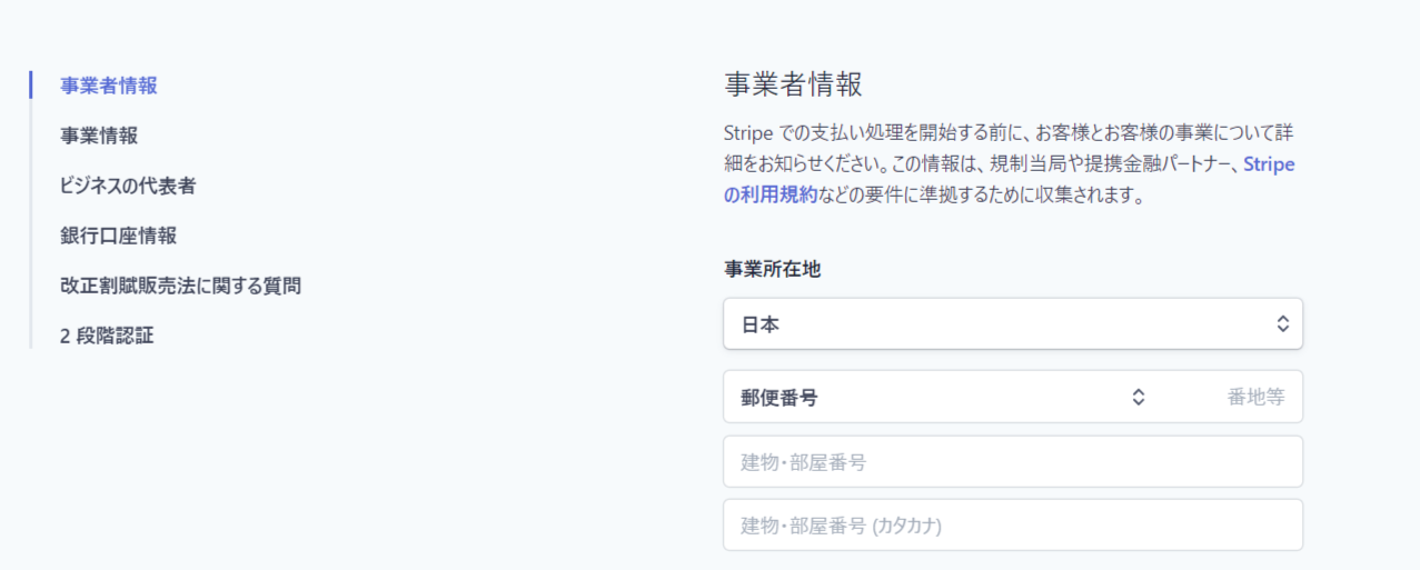 Stripeのアカウント作成