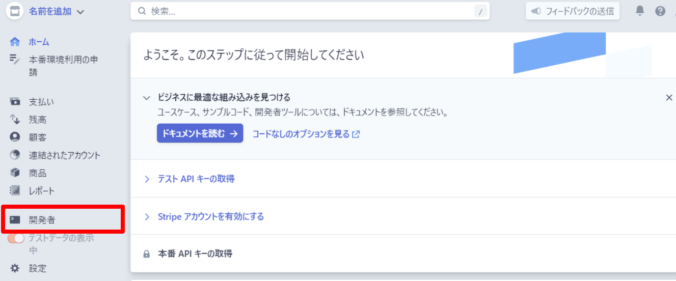 引き続き、同じStripeのページで以下のような画面になっているかと思います。