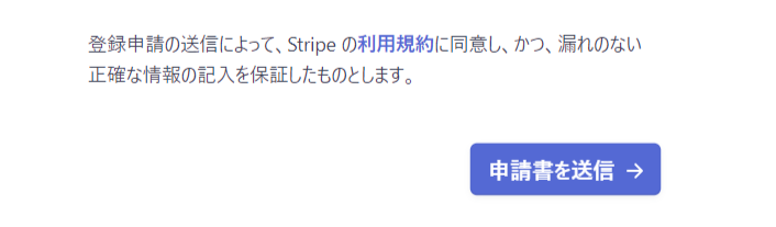 stripeの画面左メニューの「本番環境利用の申請」をクリックします。