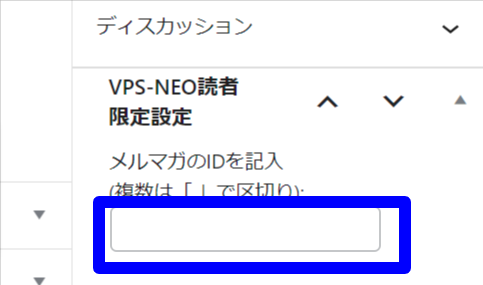 編集画面の右のところの下の方に「VPS-NEO読者限定設定」というメニューがありますので、