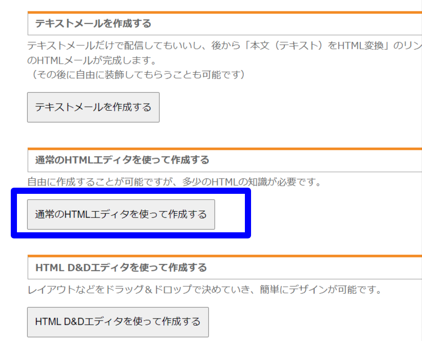 「通常のHTMLエディタ」を選び、「HTML直接編集」をクリックしてください。